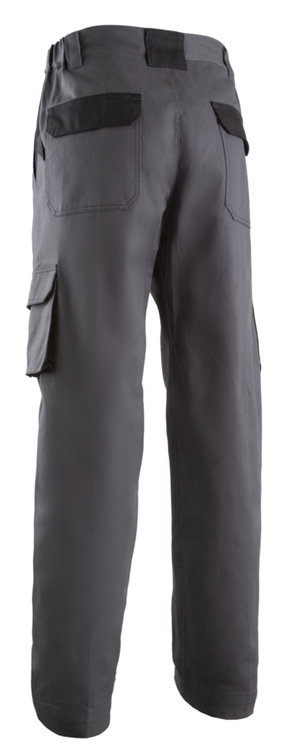 Țesătură în diagonală: 100% bumbac – 260g/m2 6 buzunare 2 bucle de ciocan 4 bucle pentru buzunare detașabile Talie elastică Culoare contrastată Tivul suplimentar: +5cm Confort fit