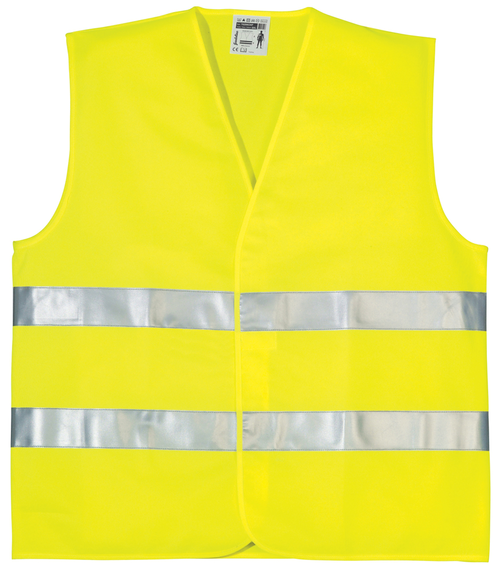 * 130 g / m2 grosime, material 100% poliester ventilat în culoare galbenă * două dungi transversale reflectorizante de 5 cm lățime * gamă foarte largă de dimensiuni: până la dimensiunea S-5XL, datorită dimensiunii sale, poate fi purtată chiar și pe un haina de iarnă, se poate regla cu o abundență de velcro * lavabil de 25 de ori și o ecranare excelentă